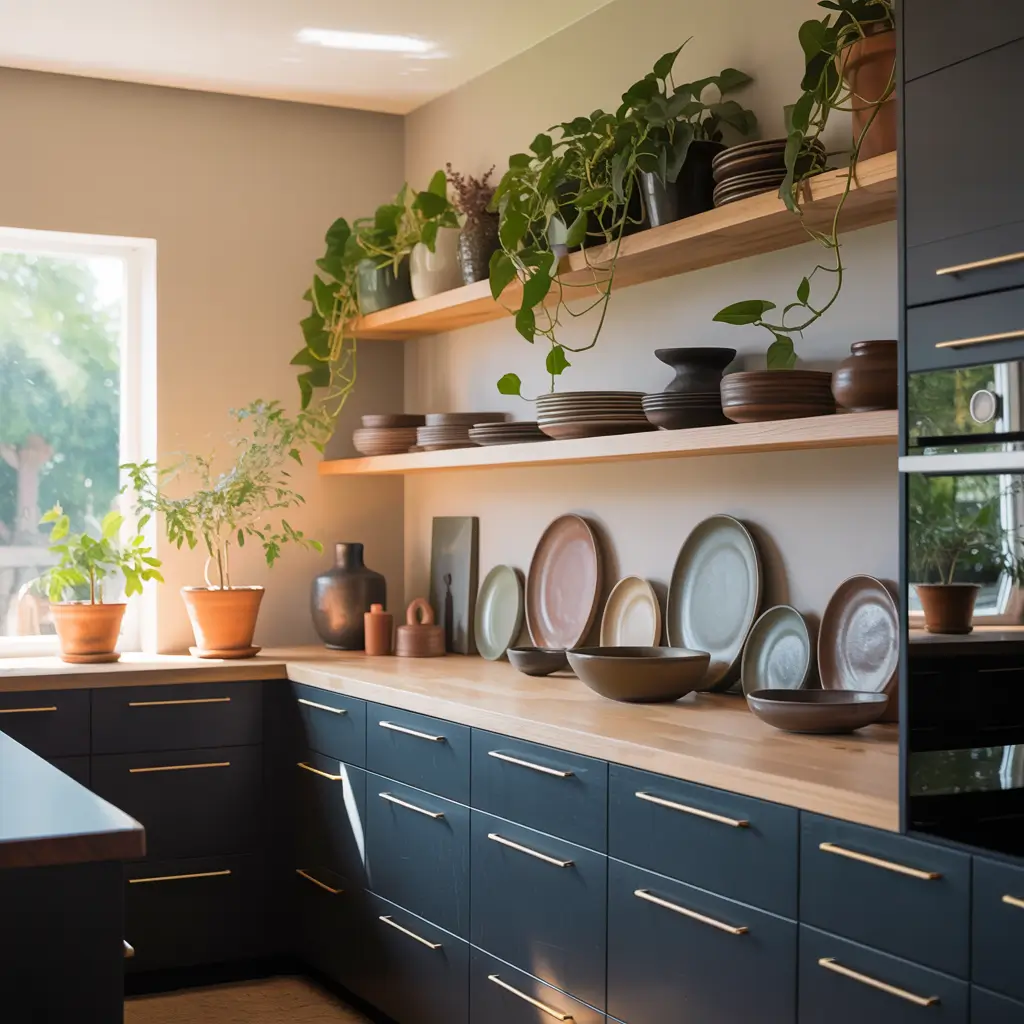 Combining black cabinets with open shelving creates the perfect balance between hidden storage and display space. This approach forced me to finally organize my dishes properly, but the visual payoff was worth the effort. Plus, reaching for everyday items became infinitely easier.
