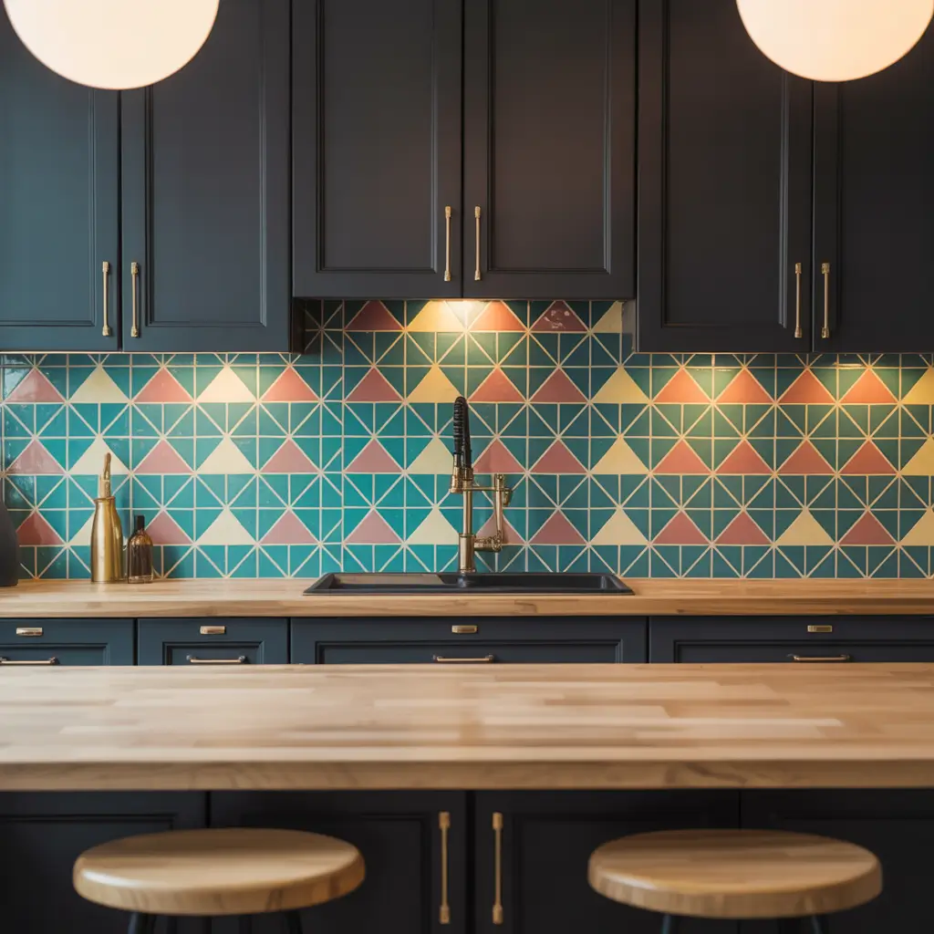 The bolder your backsplash, the simpler your cabinet hardware should be. Let one element be the star.