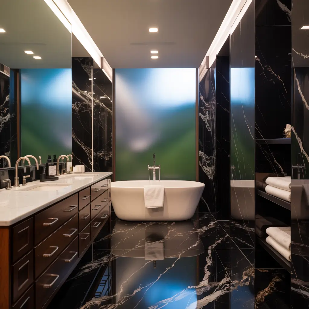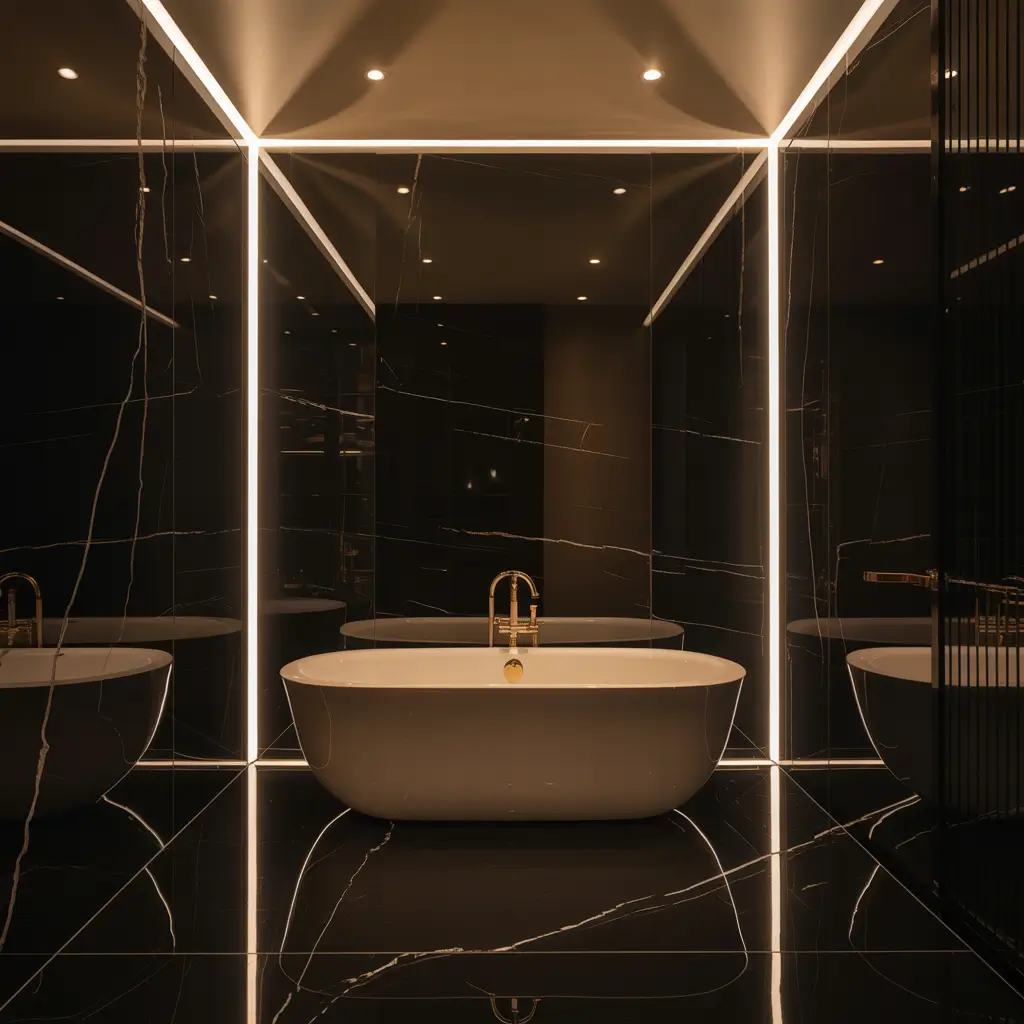 Matte Black Marble Tiles with Warm Lighting