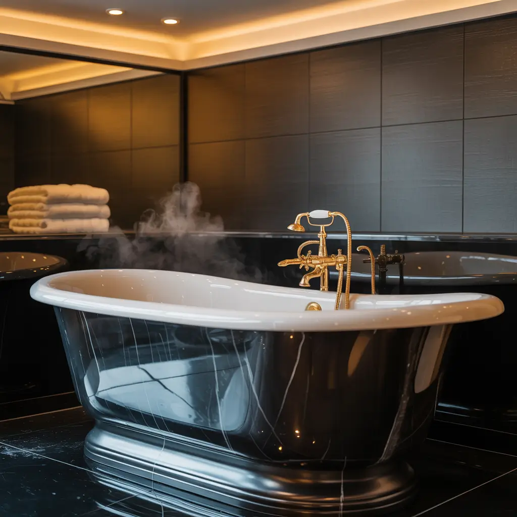 Luxurious Black Marble Bathtub Surround