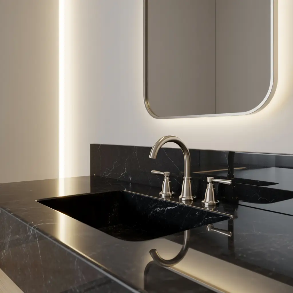 Minimalist Black Marble Vanity Design