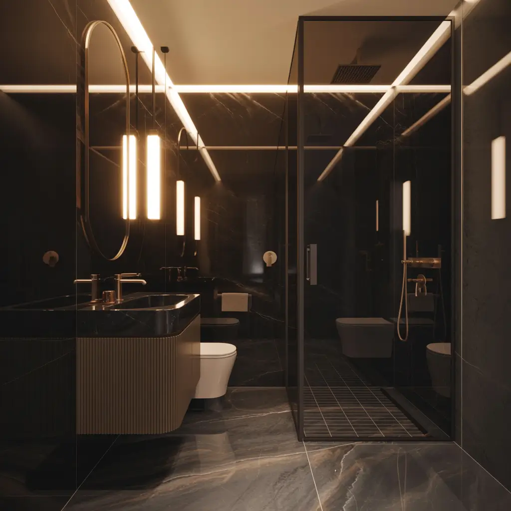 Modern Black Marble Bathroom with Gold Accents
