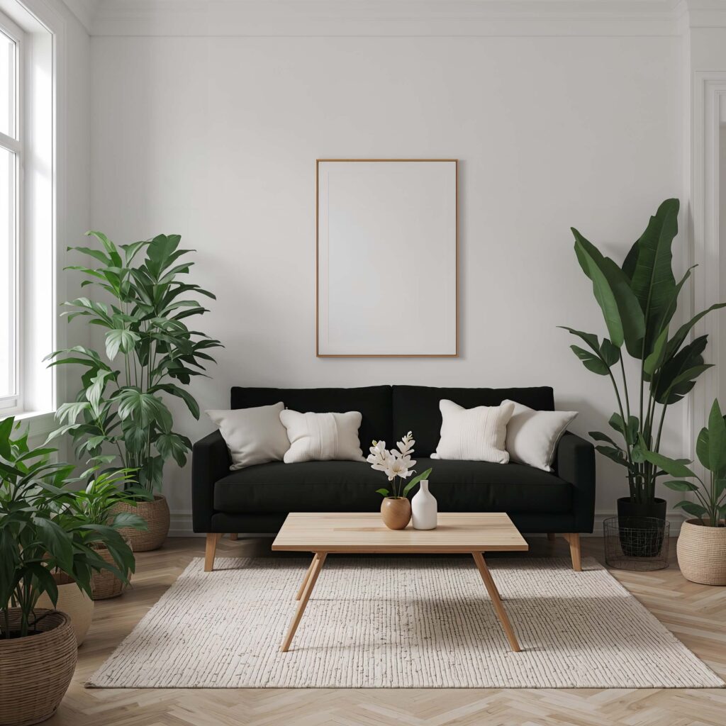 Nothing brings life to a black sofa quite like plants. And I mean that literally – the contrast between dark furniture and vibrant greenery is pure magic. Plus, plants improve air quality, so it’s a win-win situation 🙂