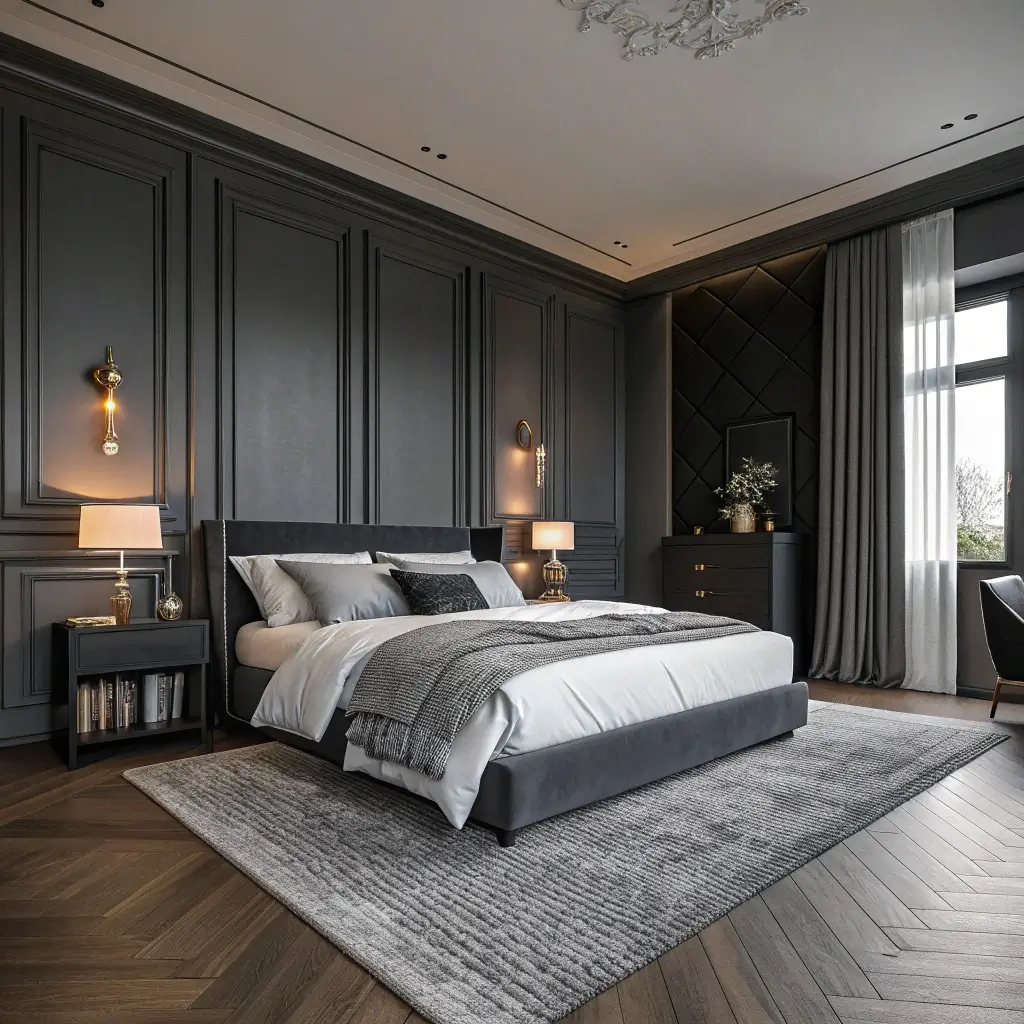 Want drama without commitment? A moody grey bedroom with black touches gives you all the atmosphere without going full goth. It’s sophisticated darkness that still feels liveable.