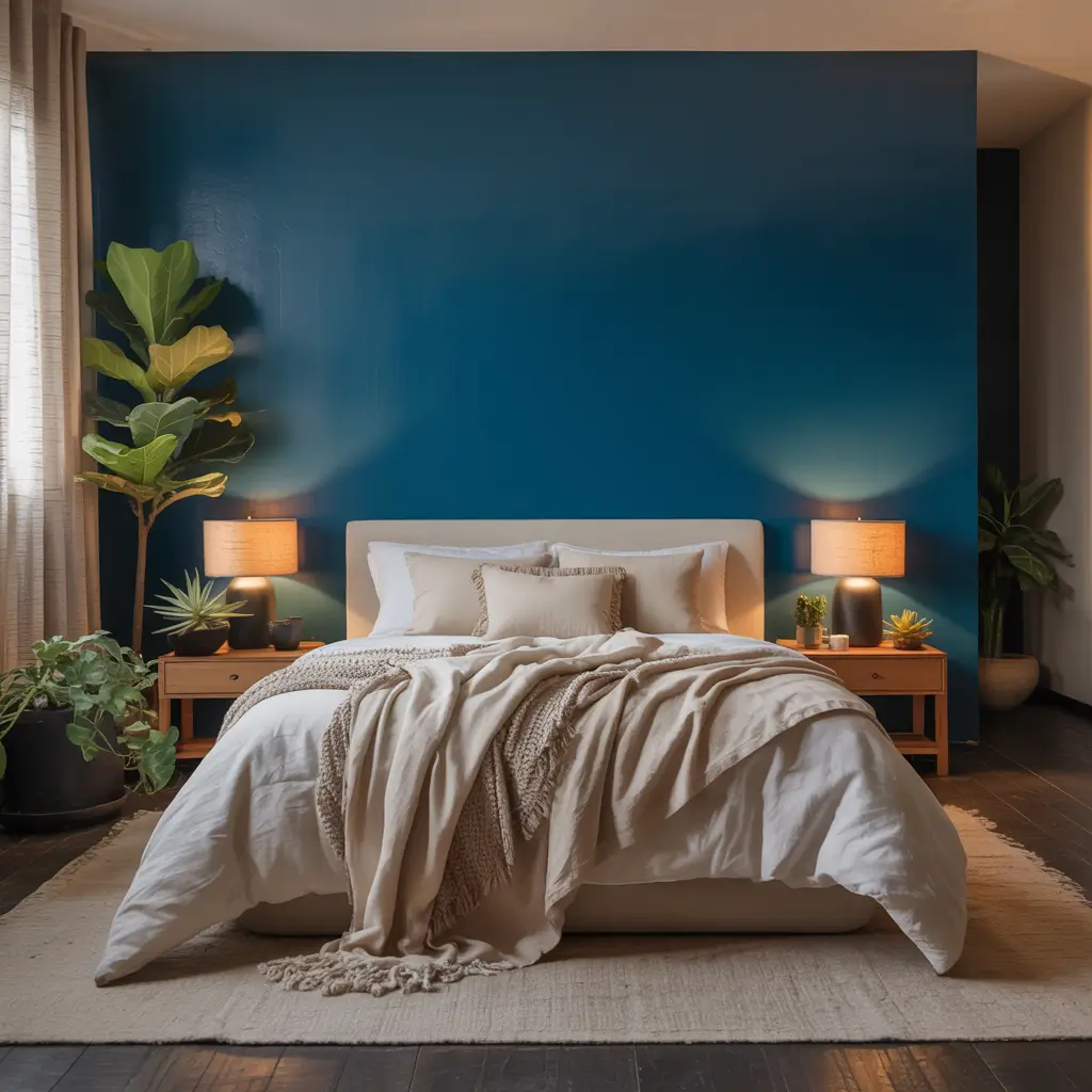 Deep indigo accent walls create mysterious, sophisticated bedrooms that feel like expensive cocoons. This rich shade between blue and purple adds depth that makes spaces feel intentionally designed.