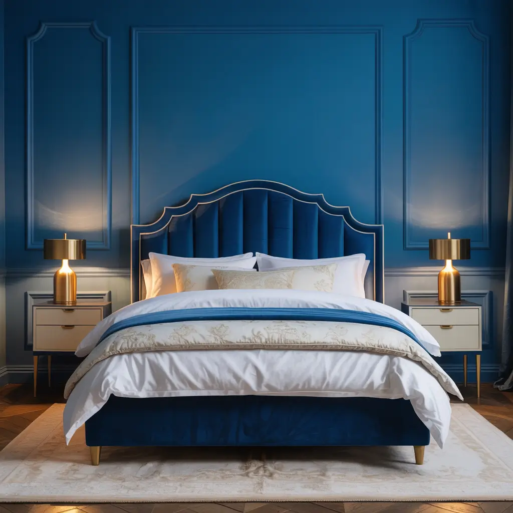 Royal blue accent walls demand attention and get it. This regal shade creates instant luxury, especially when you add textural elements like upholstered headboards.