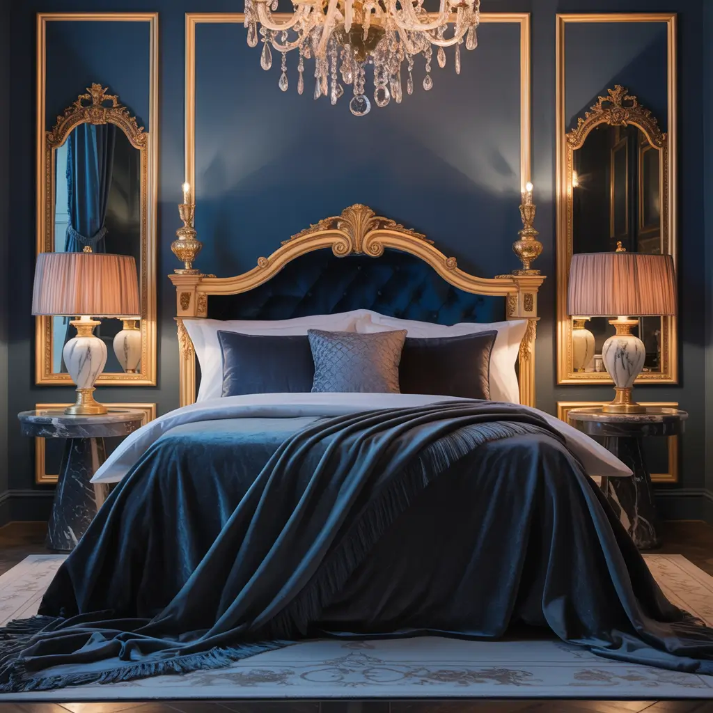Luxurious Navy and Gold Glam Bedroom