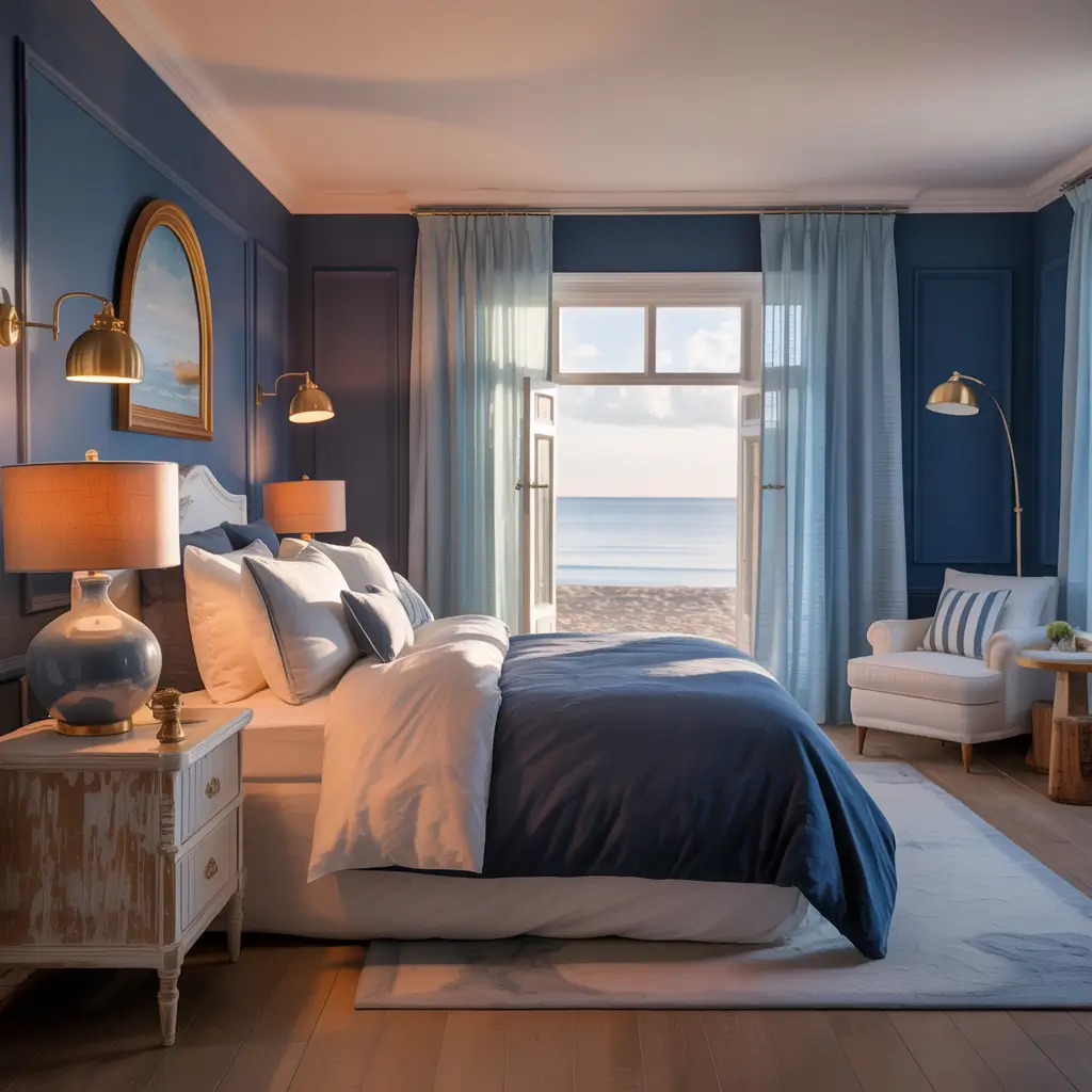 Forget nautical clichés – navy and gold coastal style brings sophisticated beach house energy without a single anchor in sight. My beach rental’s master bedroom uses this palette, and guests constantly ask for decorating tips.