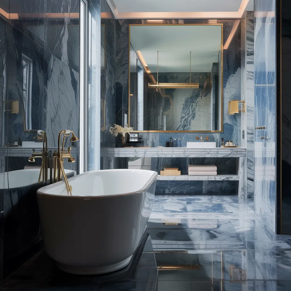 Luxury Marble Blue and Grey Bathroom