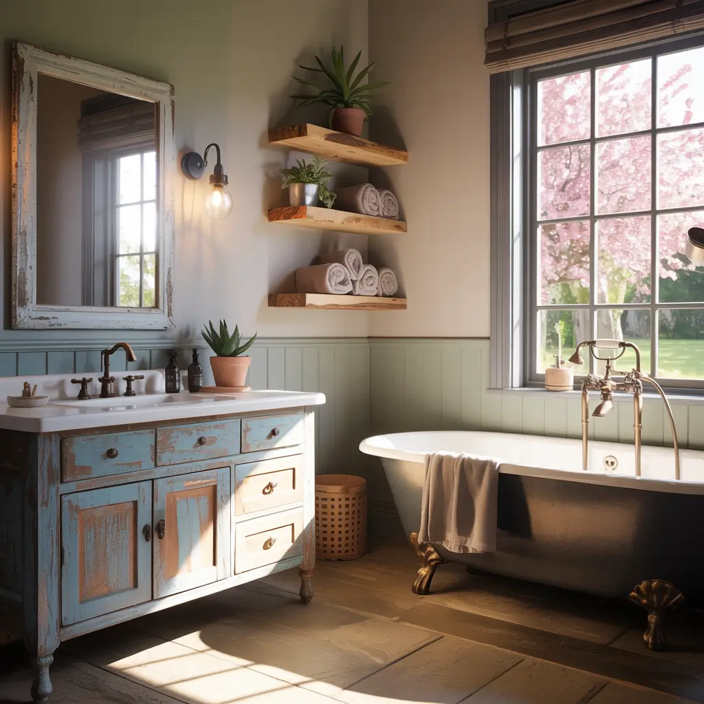 My cabin bathroom proved this perfectly. Original wood beams, vintage fixtures, but instead of more brown, I added blue-grey board and batten. The colors brighten the space while respecting its rustic roots. It’s like giving your grandpa’s bathroom a stylish granddaughter’s makeover.