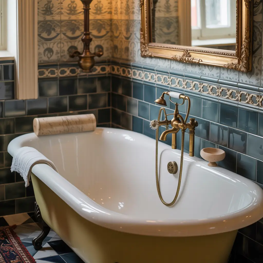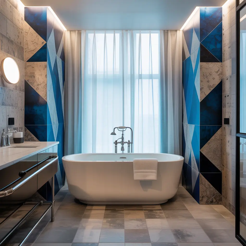 Modern tile patterns in blue and grey turn your bathroom into an Instagram-worthy masterpiece. We’re talking geometric designs, unexpected layouts, and patterns that make people stop mid-tooth-brush to admire.
