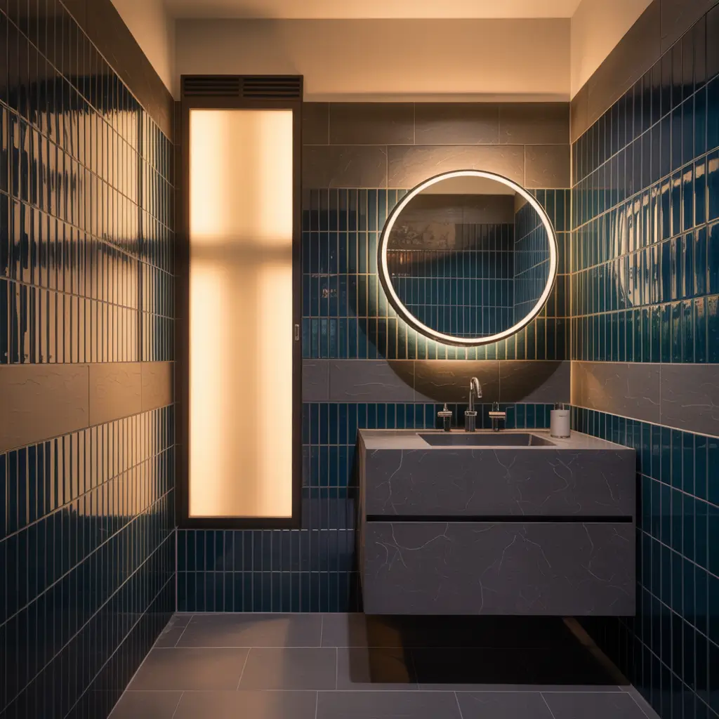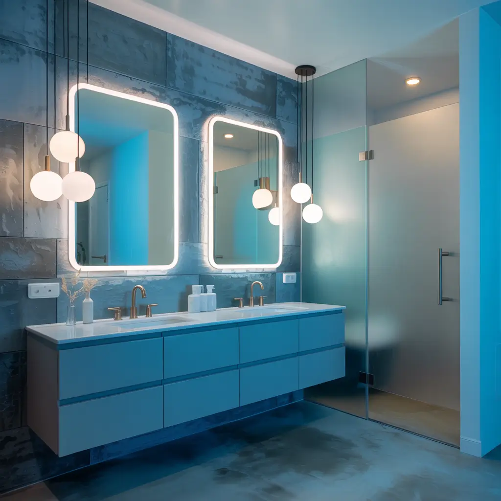 Lighting can make or break your blue and grey bathroom, and contemporary fixtures add that final layer of sophistication. The right lighting enhances your color palette while providing functional illumination.