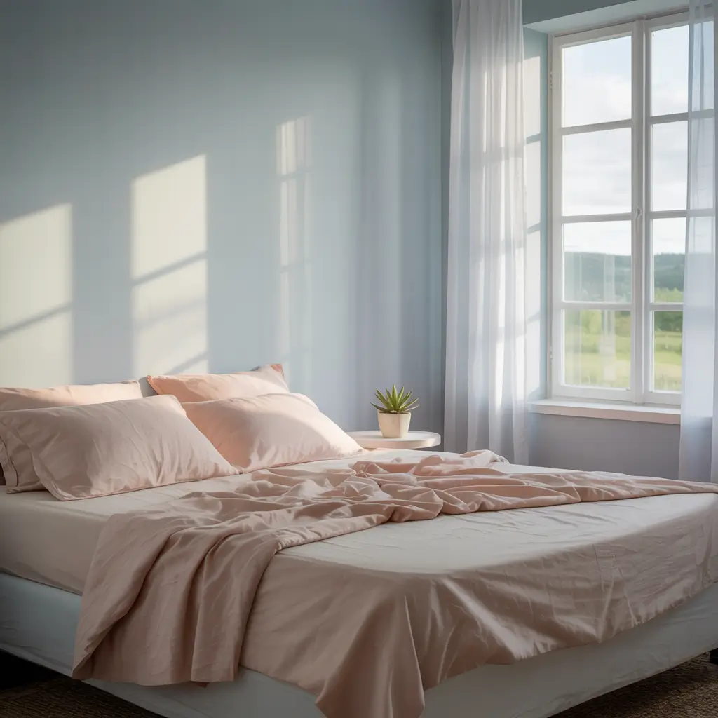 • Quality Textiles: Invest in high-quality linen or cotton bedding in blush pink, crisp white, or a very light pastel blue. This adds texture and luxury without introducing visual clutter, keeping the look refined.