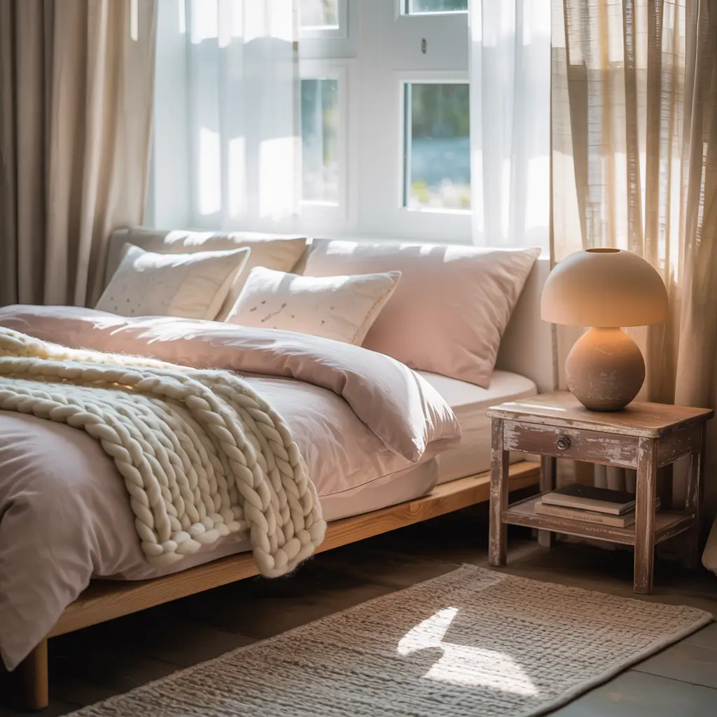 • Natural Materials: Incorporate furniture pieces made from rattan, wicker, or light-toned wood. A rattan headboard, a wooden side table, or a bamboo pendant light adds organic warmth and texture.