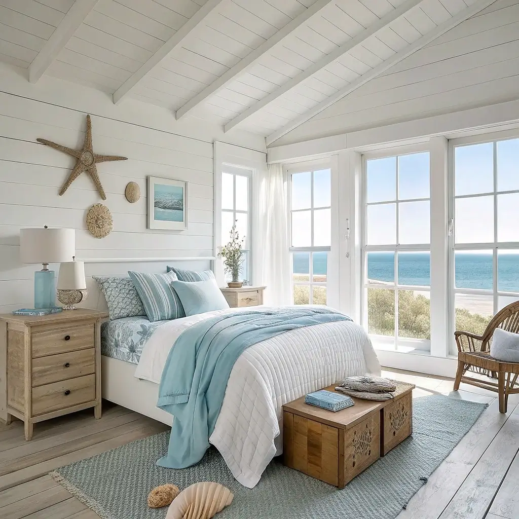 1. Serene Blue and White Coastal Bedroom