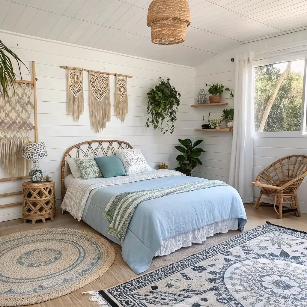 6. Chic Boho Blue and White Bedroom Decor