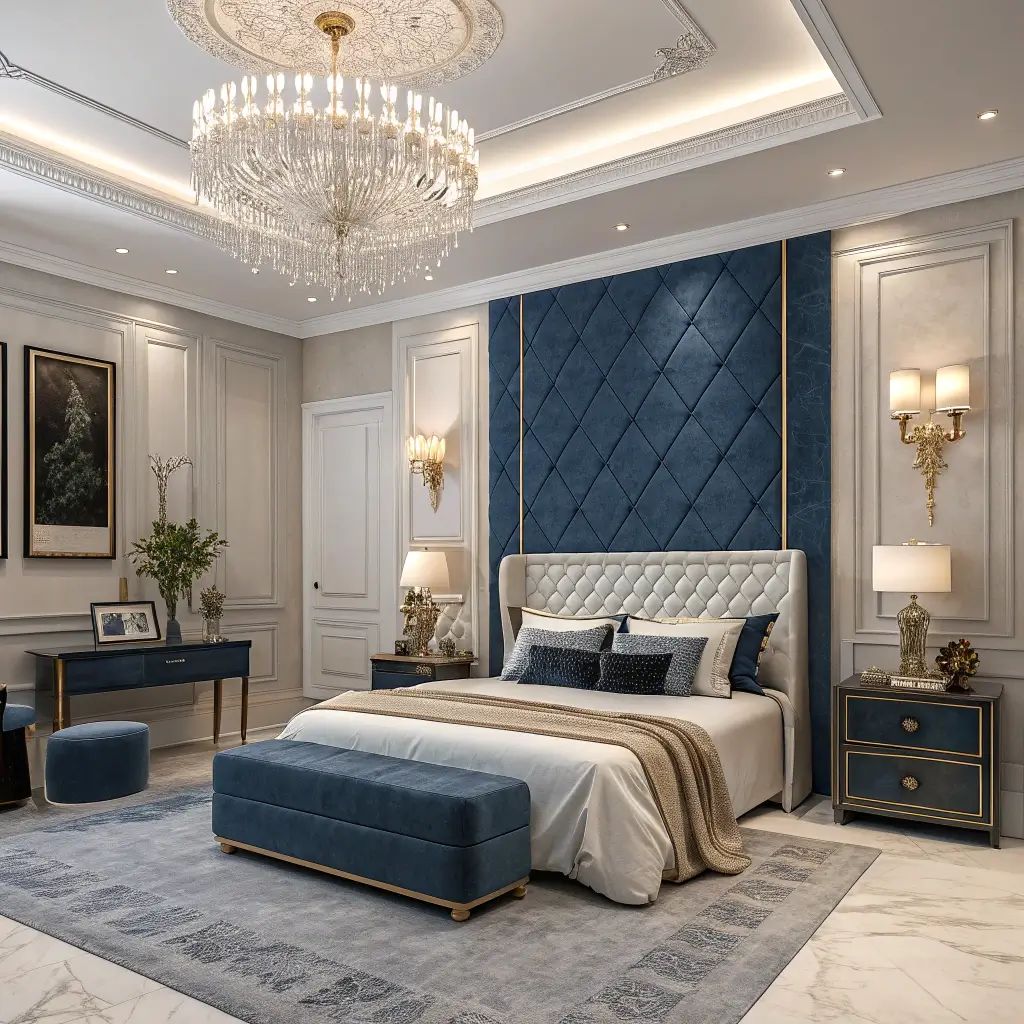 Want your bedroom to feel like a five-star hotel suite? Luxury blue and white design combines premium materials with sophisticated styling for maximum elegance and comfort.
