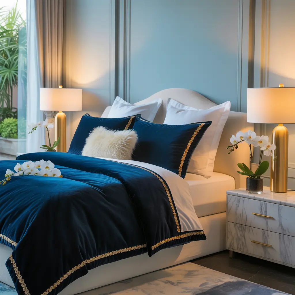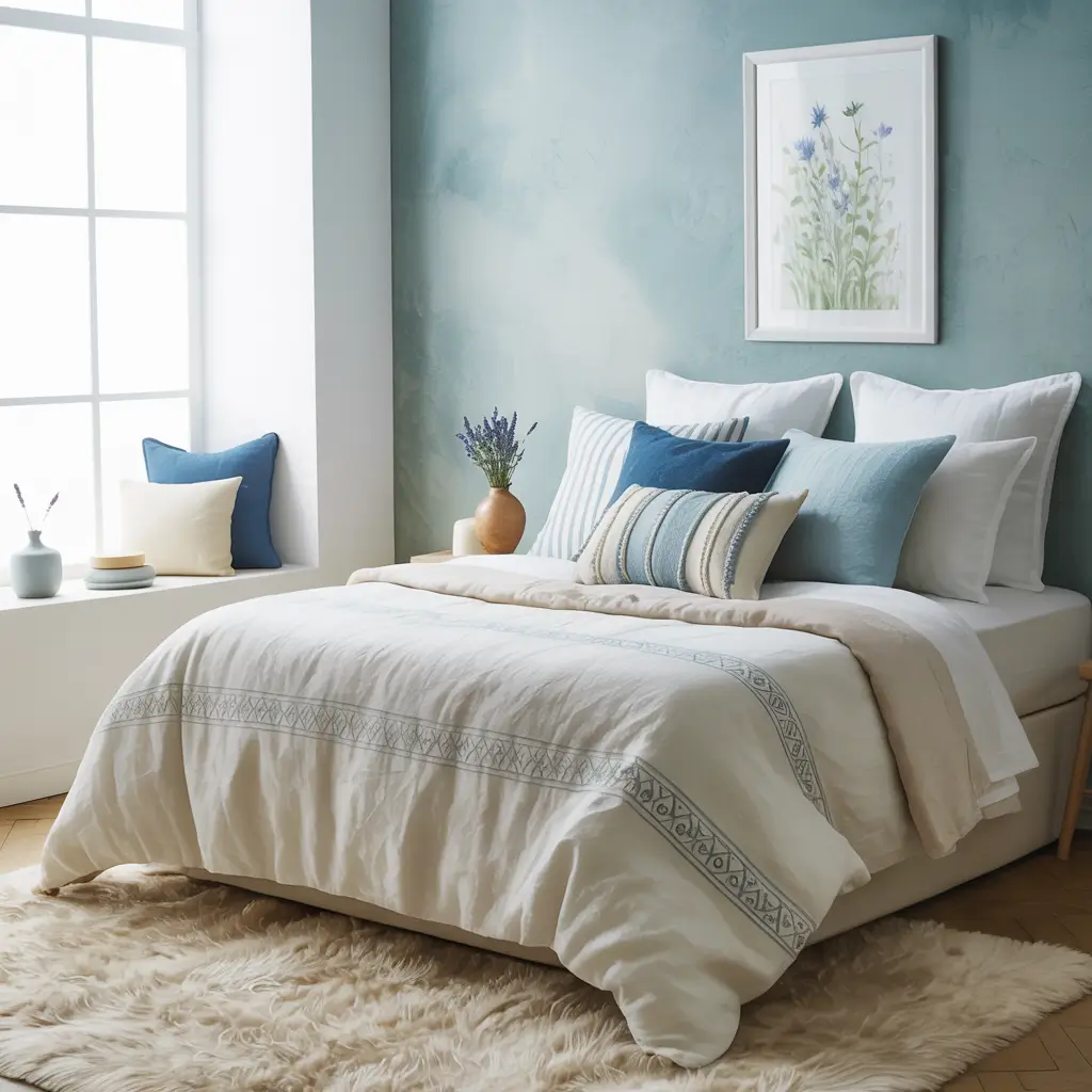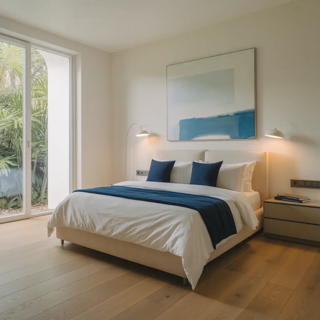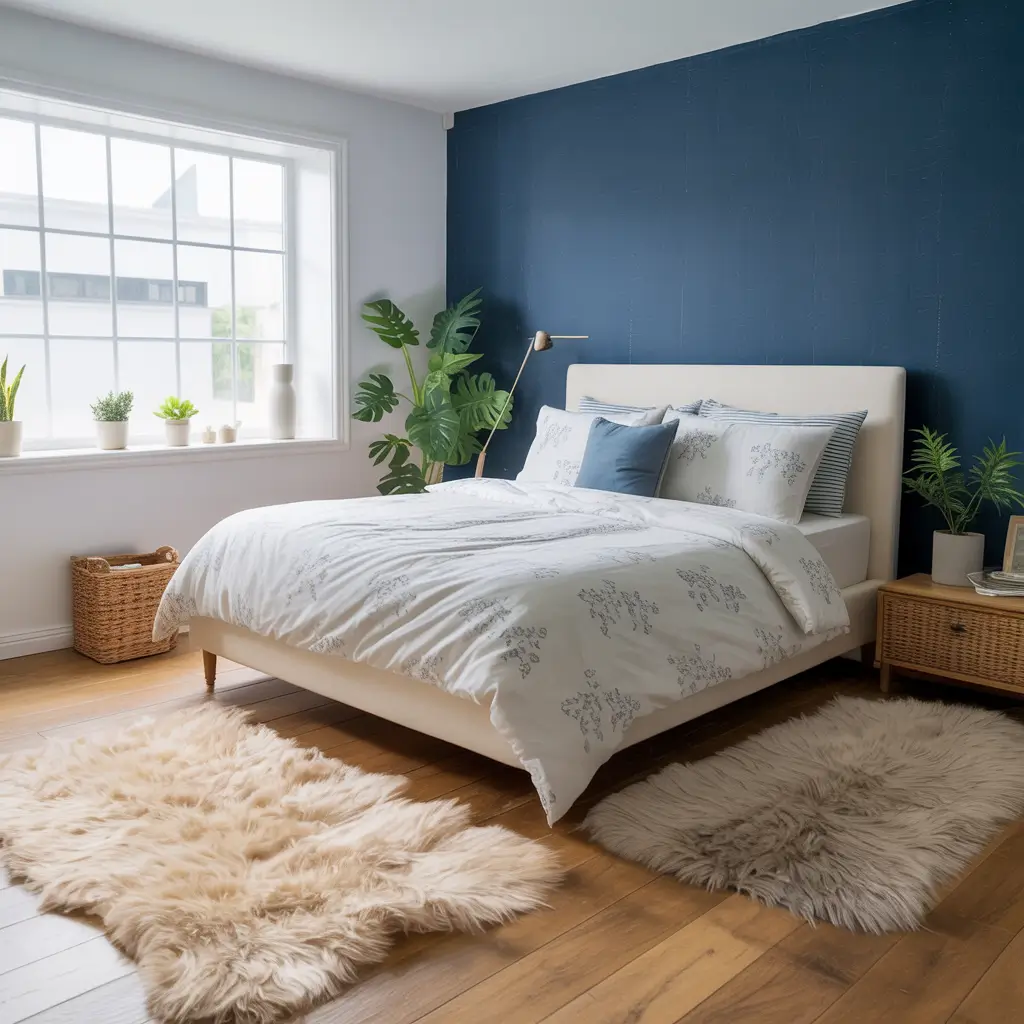 The trick is choosing where your blue appears and committing to it. A blue headboard against white walls. Blue bedding on a white bed frame. One approach, executed well, beats scattering blue everywhere and hoping it works.