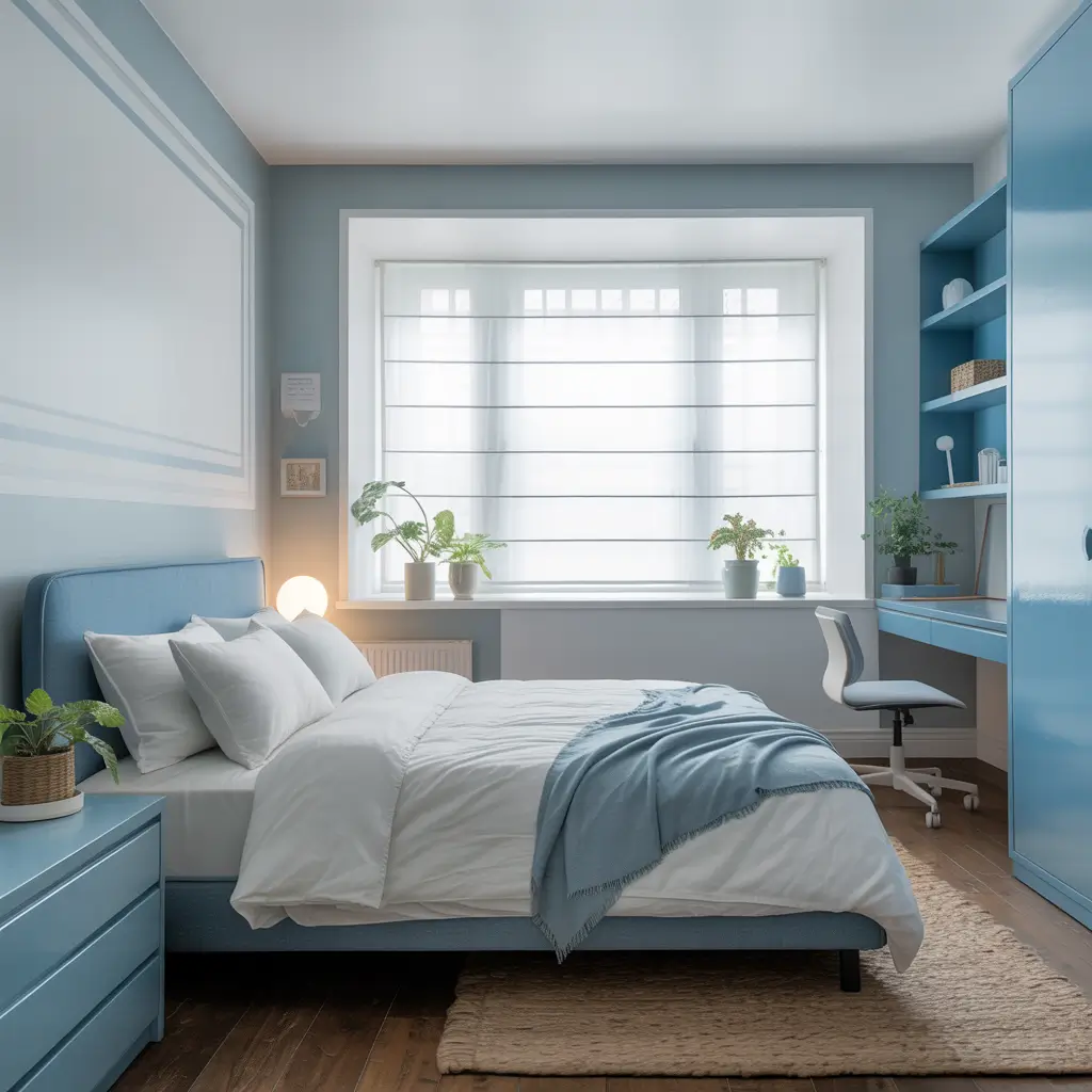 Tiny bedroom? Blue and white might be your best friends. This combination creates the illusion of more space when used strategically. White reflects light and opens up rooms, while blue adds depth without closing things in.