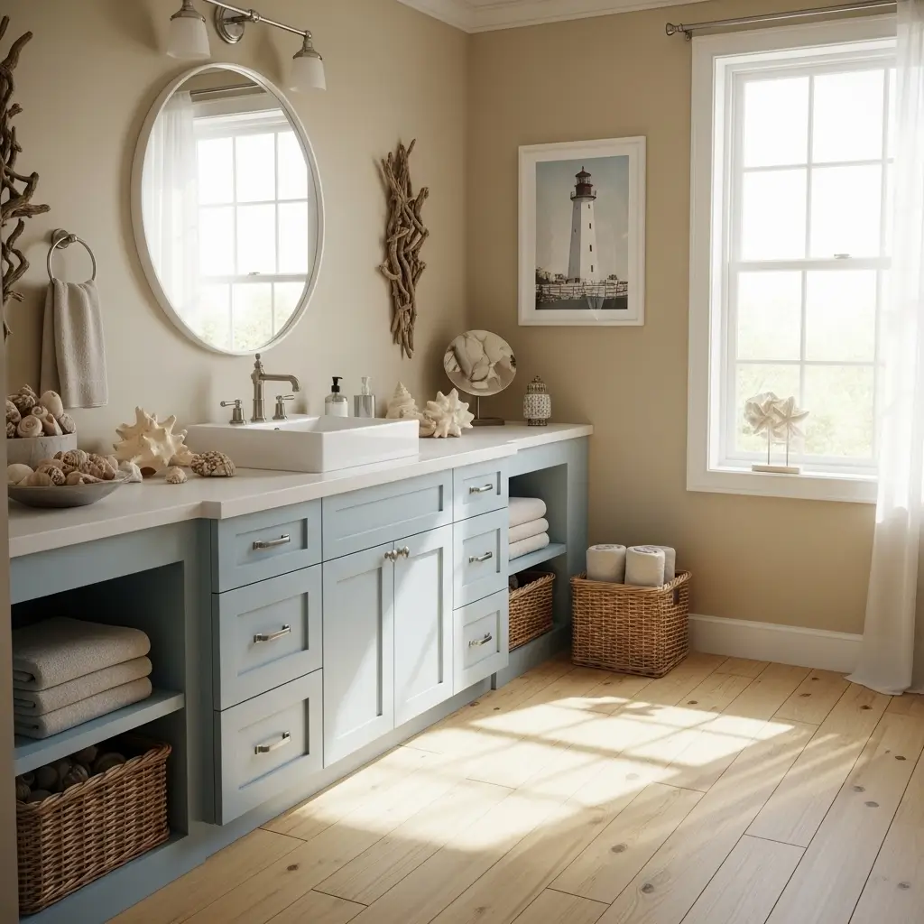 My sister lives nowhere near the ocean but wanted that coastal feeling in her guest bathroom. We chose a soft, weathered light blue for her vanity, and paired it with rope drawer pulls and a driftwood mirror. The transformation was incredible – suddenly her landlocked bathroom felt like a Martha’s Vineyard retreat.