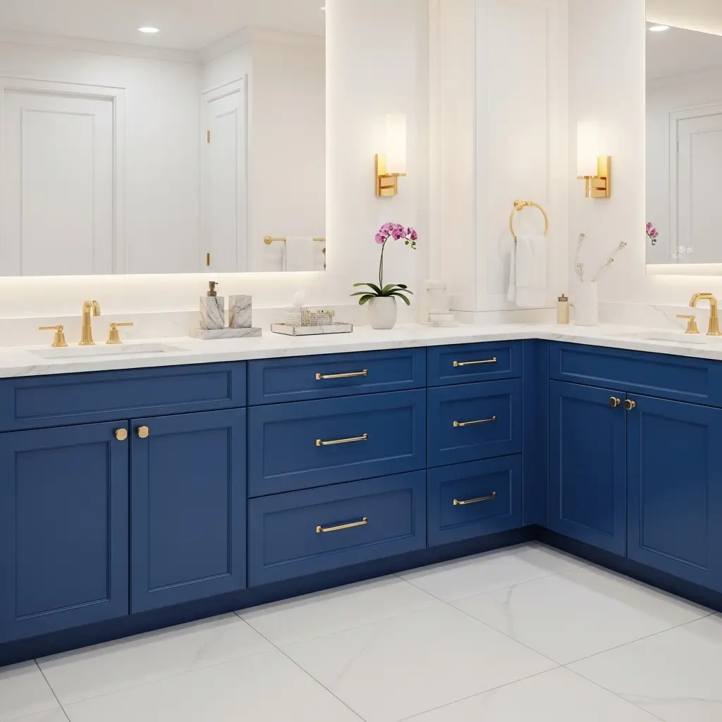 Sapphire blue cabinets are for those who believe bathrooms should be anything but boring. This rich, jewel-toned blue creates immediate impact and transforms ordinary bathrooms into extraordinary spaces.