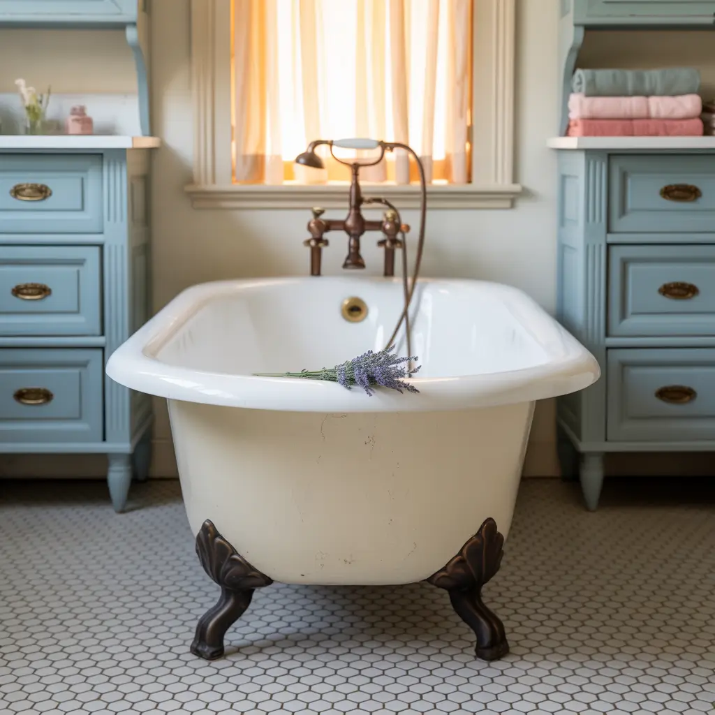 The trick with powder blue is leaning into its vintage roots. Don’t try to make it modern – embrace the nostalgic sweetness with period-appropriate fixtures and accessories.