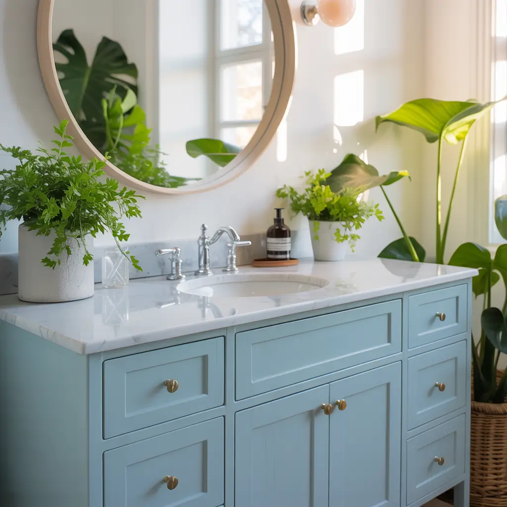 I installed a sky blue vanity in my powder room, and it’s become everyone’s favorite Instagram backdrop. No joke – I’ve had three friends copy the exact same shade. The color works magic with natural light, making small bathrooms feel twice as big.