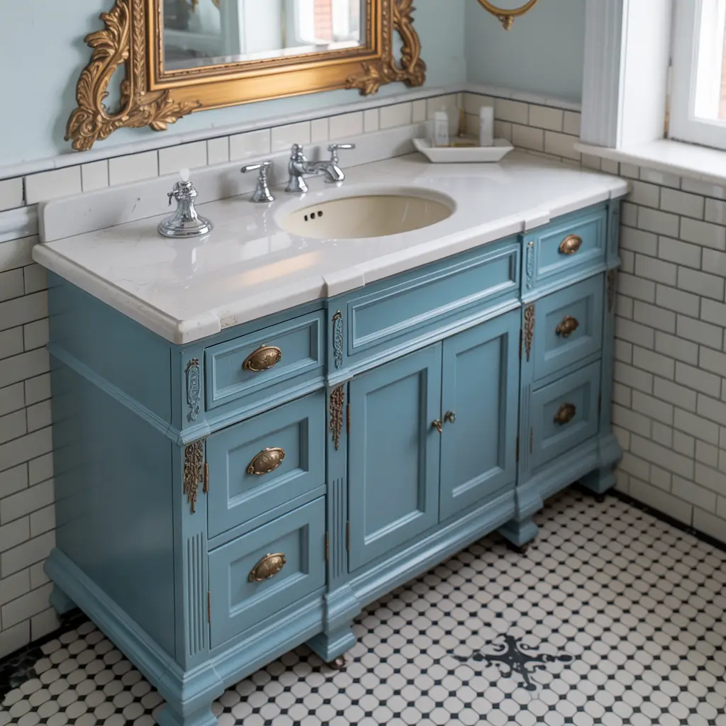 Real vintage or vintage-inspired? Both work. I scored an actual 1950s blue vanity at an estate sale, but I’ve also seen amazing reproductions that nail the look. The best part? Vintage style is forgiving – dings and scratches add character.