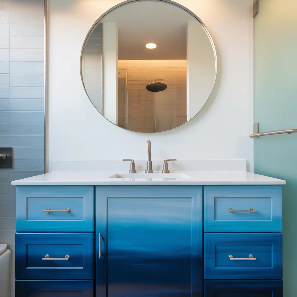 Why settle for one shade of blue when you can have them all? Ombre blue vanities are having a moment, and I’m here for it. The gradient effect adds artistic flair without trying too hard.