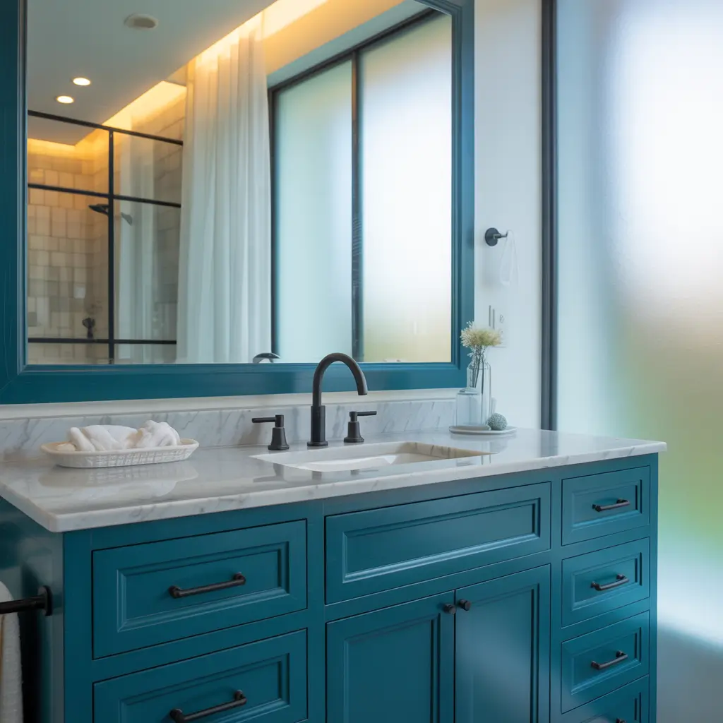 I installed a deep teal vanity in my master bath two years ago, and I still smile every morning. The color changes with the light – more blue in morning sun, greener under evening lights. It’s like having two vanities for the price of one.