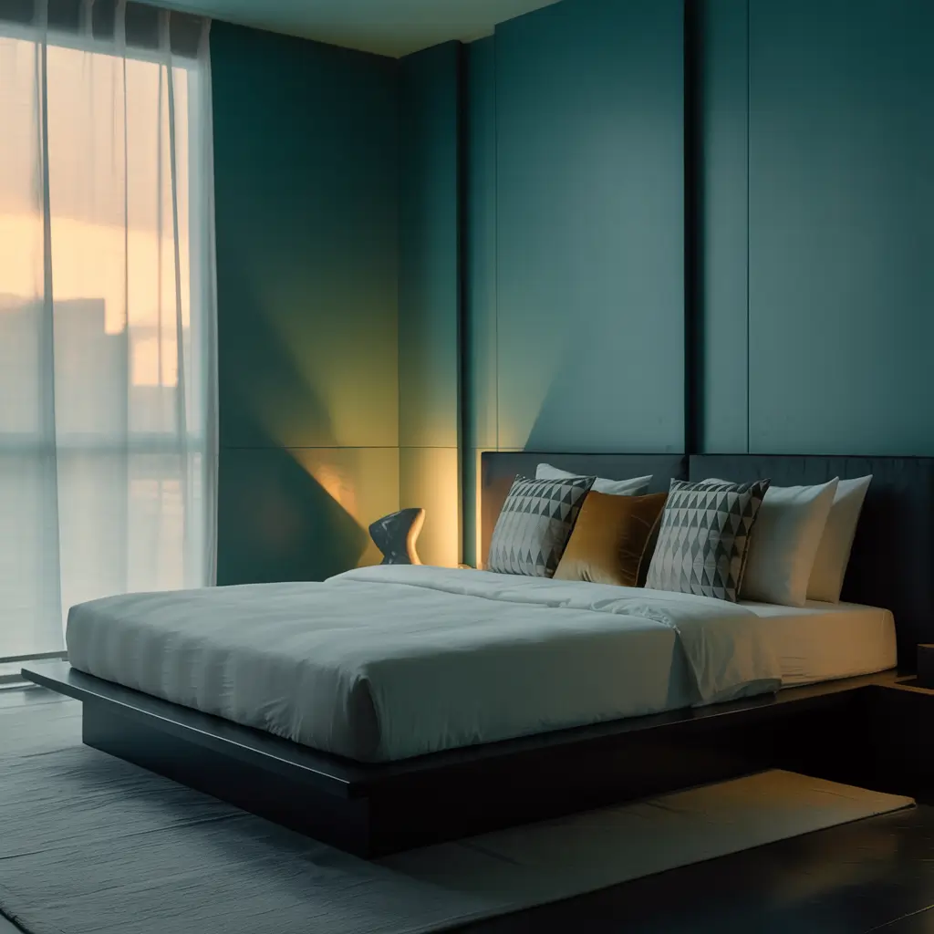 • Choose teal with strong blue undertones for bedroom calm