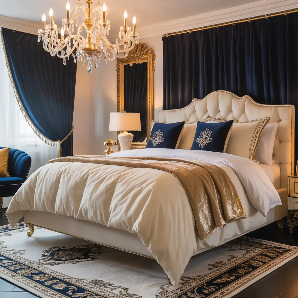 Blue and Gold Glamorous Bedroom
