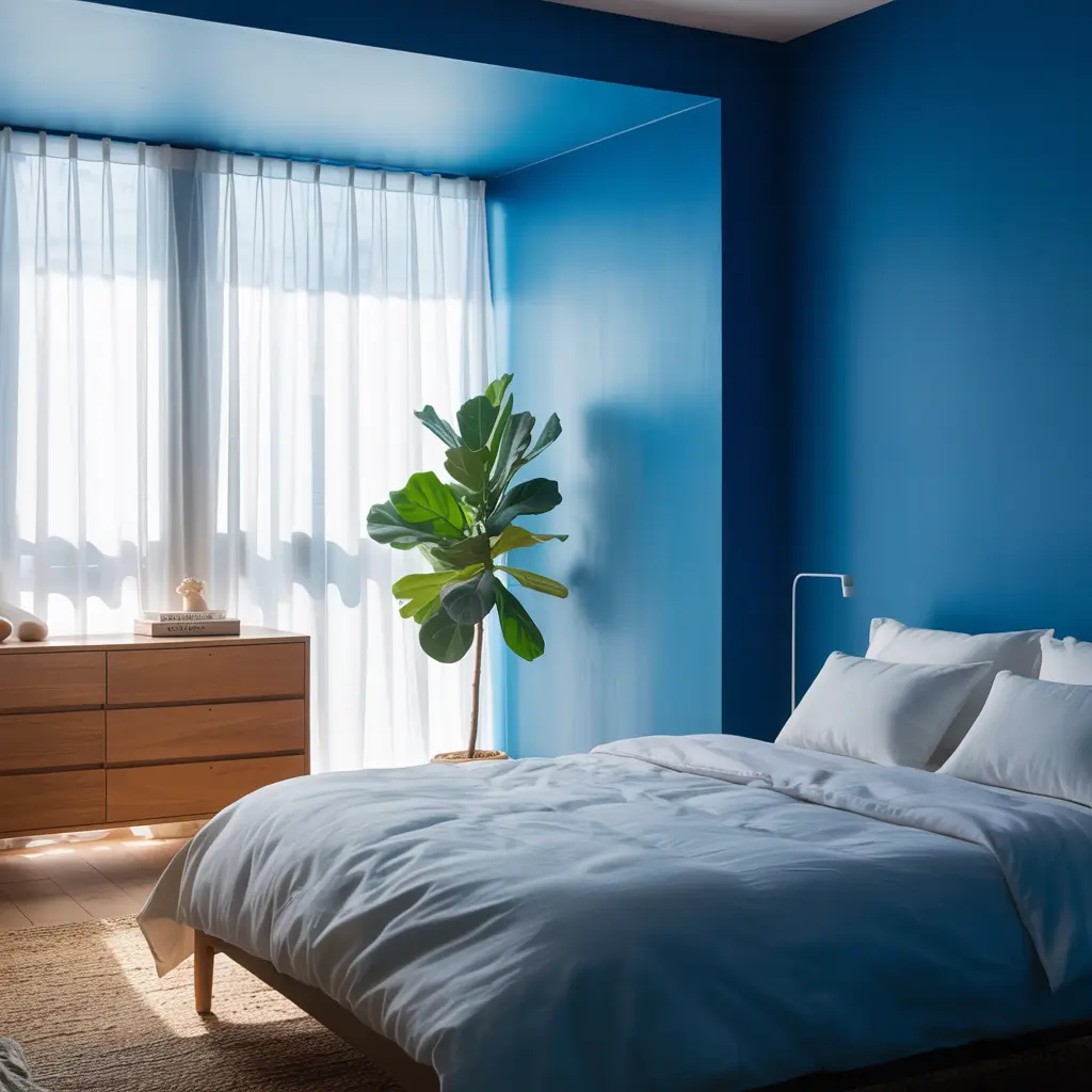 This shade works best in bedrooms with decent natural light. In dark rooms, it can feel overwhelming. If your space gets limited daylight, consider using royal blue as an accent rather than the main event.