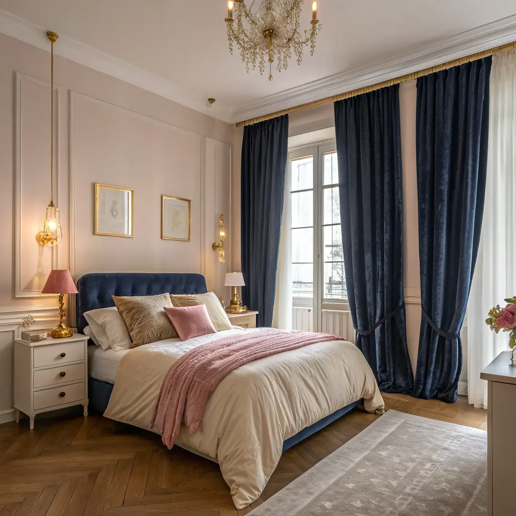 Let’s talk about the heavyweight champion of bedroom curtains: navy blue velvet. These beauties transform any bedroom into a luxurious retreat faster than you can say “five-star hotel.”