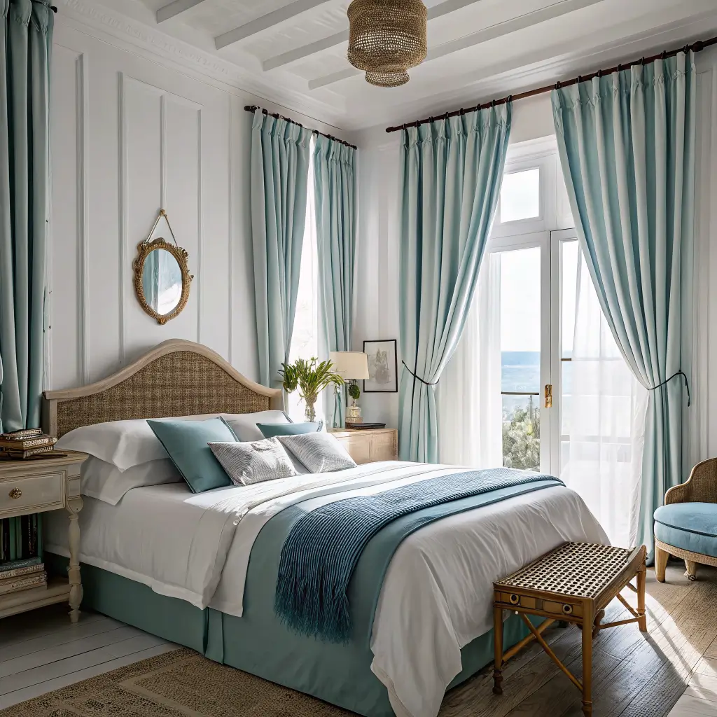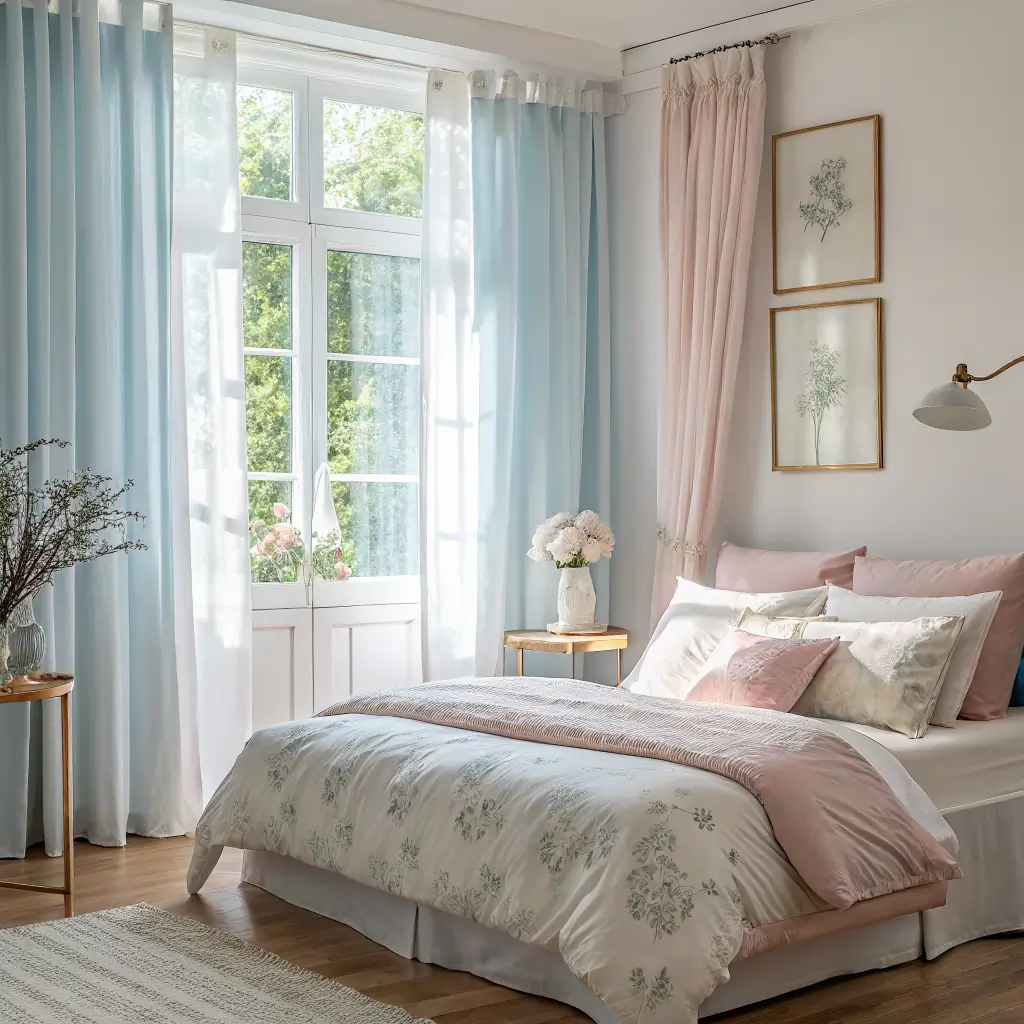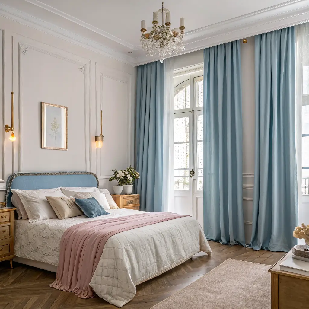 Powder blue curtains with matching bedding might sound too matchy-matchy, but done right, it creates this enveloping cocoon of calm. The trick is knowing how to match without looking like a catalog page.