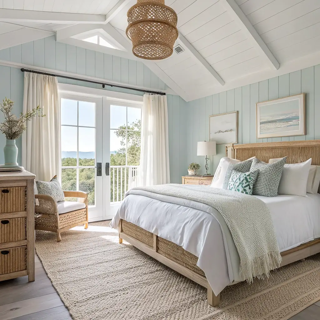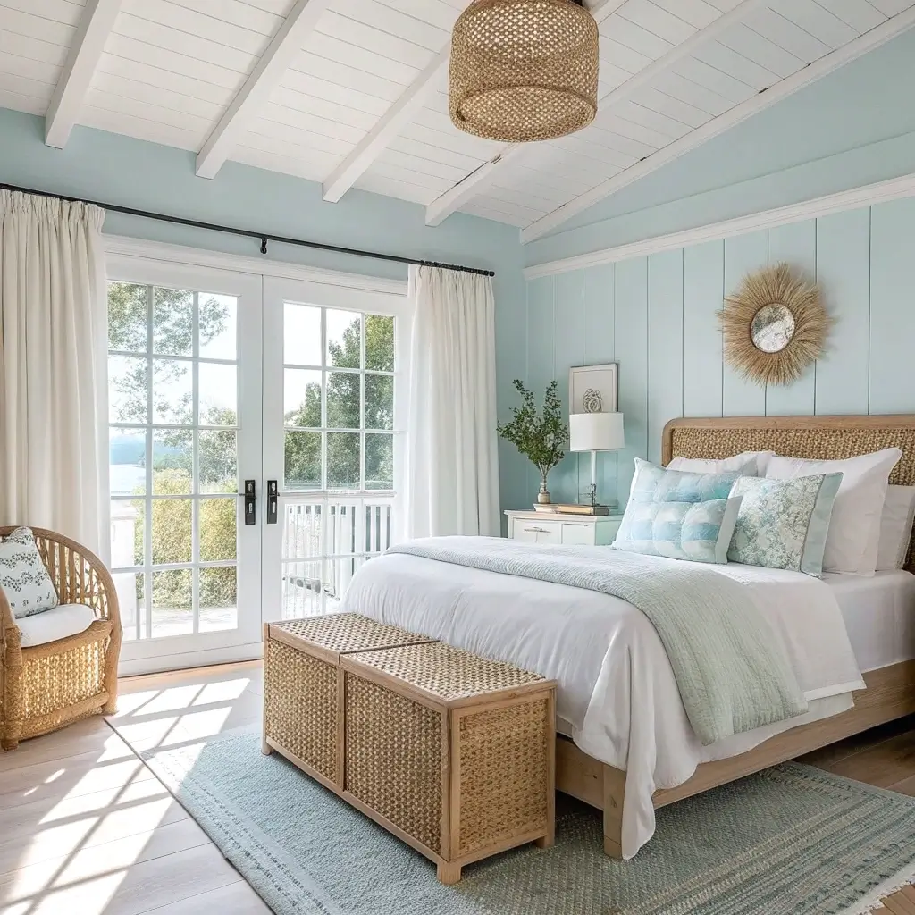 7. Coastal-Inspired Blue Farmhouse Bedroom