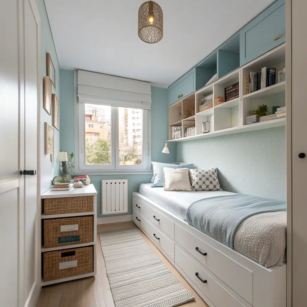 IMO, light blue beats white for small bedrooms because it adds personality while maintaining that spacious feeling. White can feel sterile, light blue feels intentional.