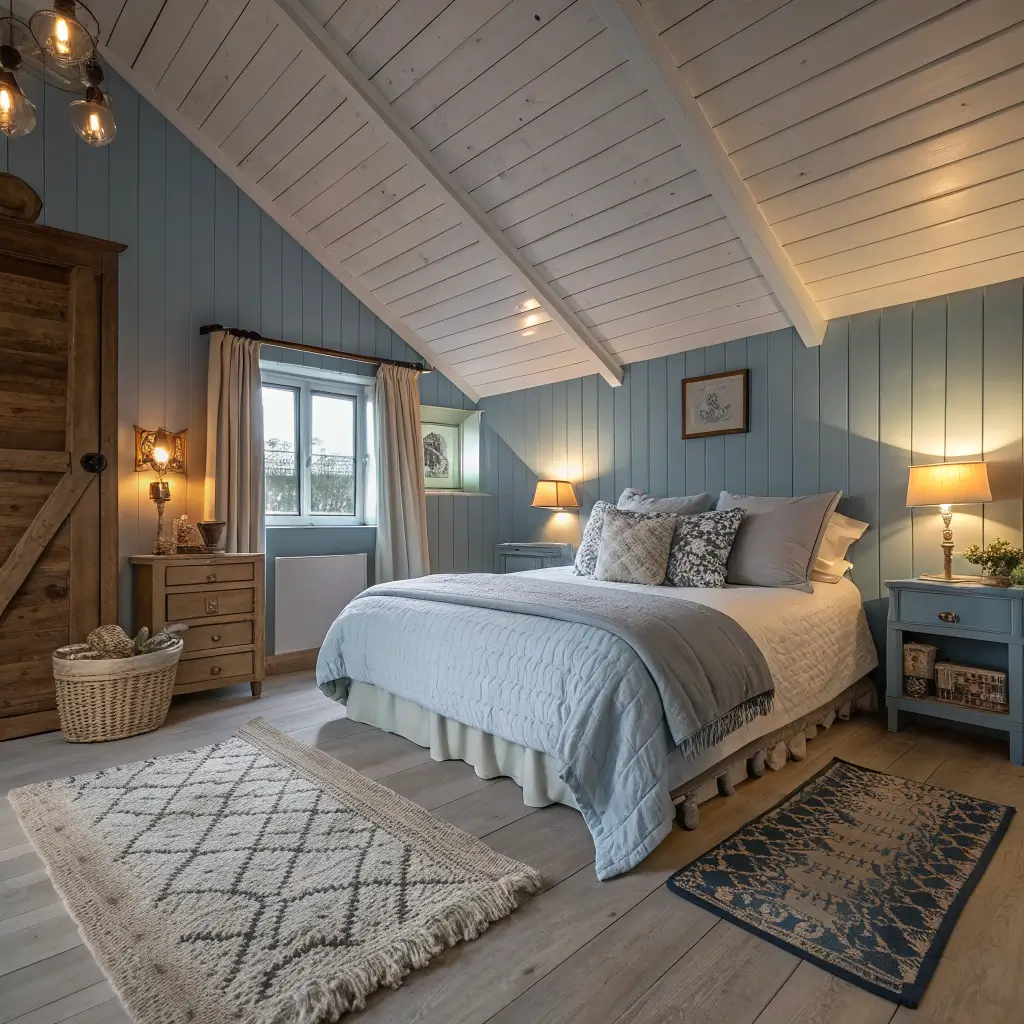 Finish matters more than you think with blue paint. Flat finishes show every imperfection but create beautiful, velvety walls. Eggshell works for most bedrooms.