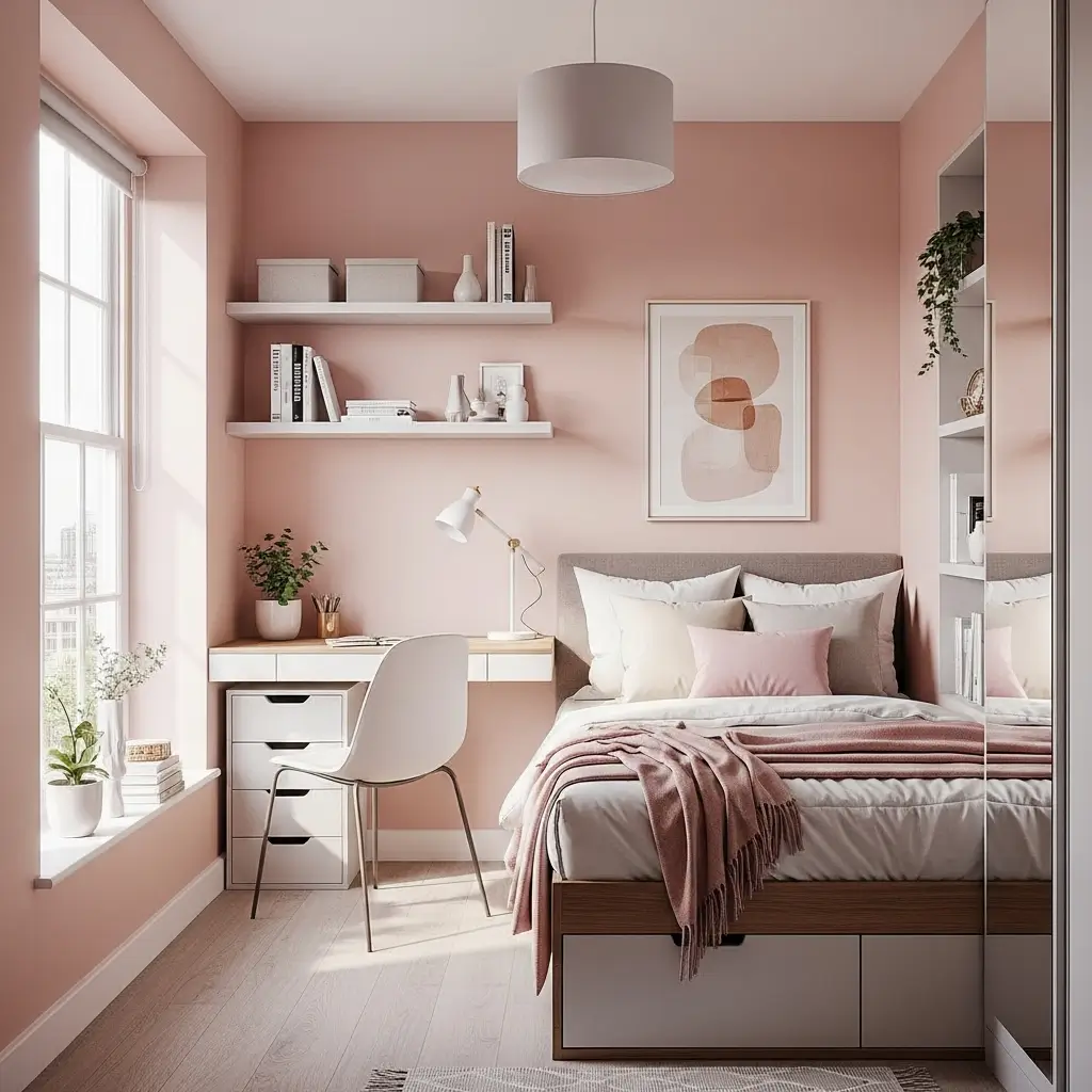 - Light Blush Walls: Paint walls a very light, airy blush pink. Darker colors can make a small room feel smaller, but a pale blush actually reflects light, making the space feel more open.