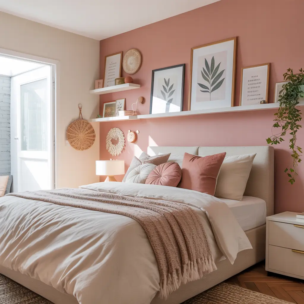- Soft Blush Walls: Paint the walls a light, inviting blush pink. This forms the warm, gentle base for your cozy haven, making the room feel soft and comforting.