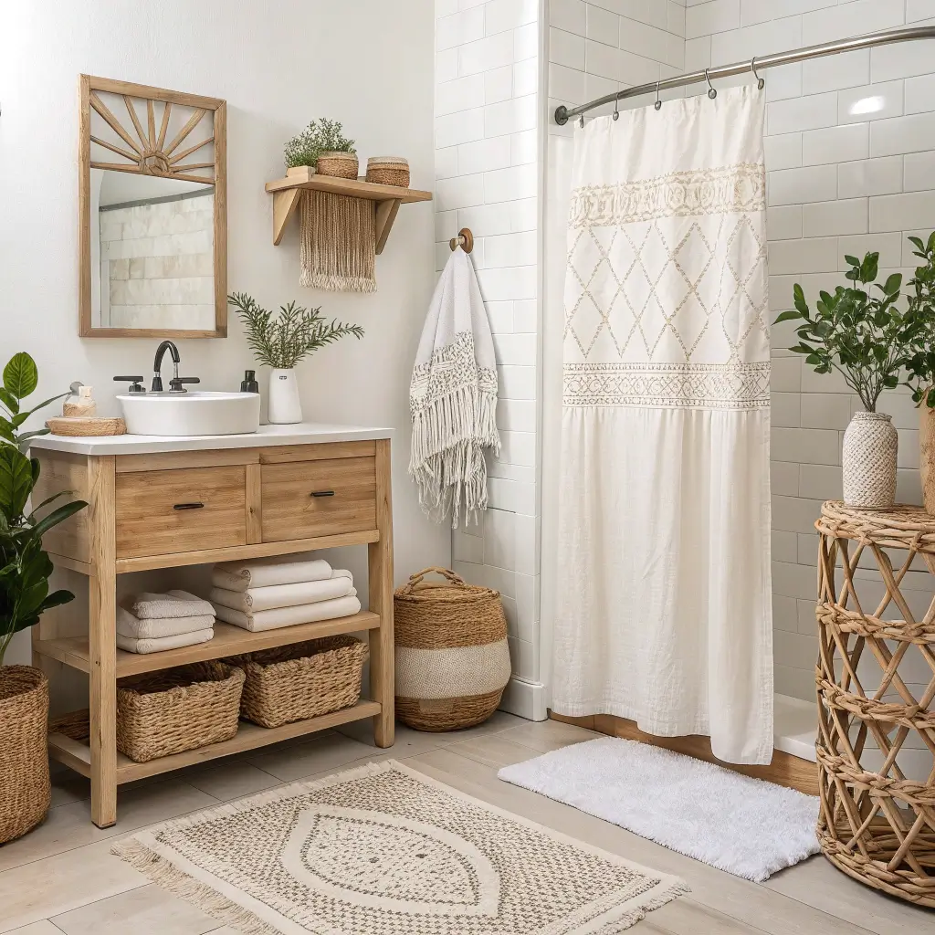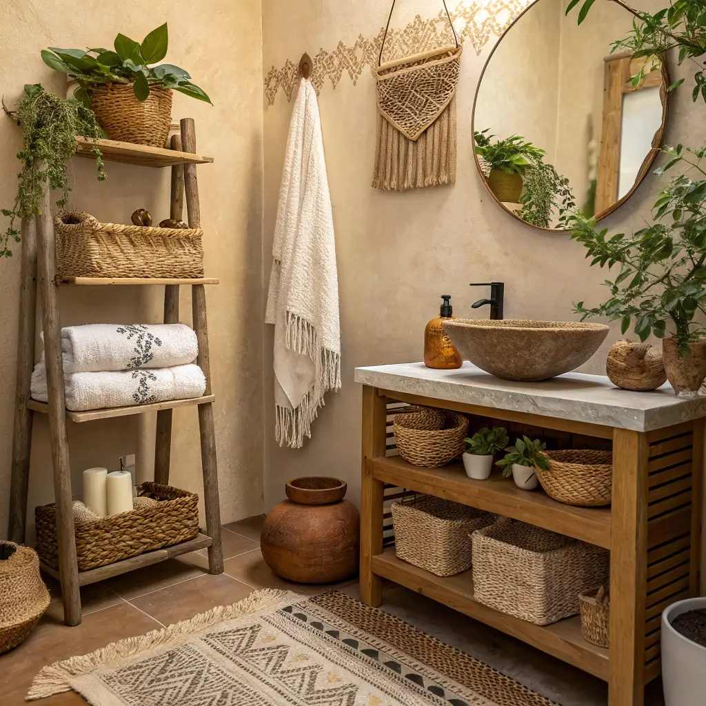 Handmade elements give boho bathrooms soul. Mass-produced decor could never capture that imperfect, artisanal charm that makes boho style so appealing.