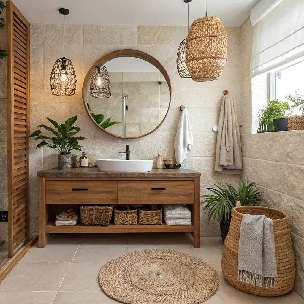 2. Minimal Boho Bathroom With Natural Textures