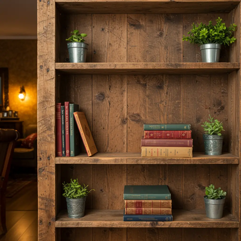 You can also create a rustic look by “flipping” an old bookshelf from a thrift store. I once bought a hideous, 1990s laminate bookshelf for $10. I sanded it down, applied a faux wood grain finish with gel stain, and added some iron hardware. It looked like a completely different piece of furniture.