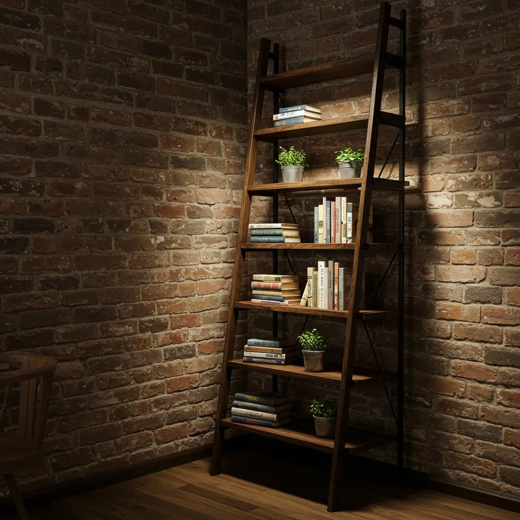 Ever wondered why this works so well? The angled design creates a sense of movement that a standard vertical bookcase lacks. It feels more dynamic and less “stuck” in place. Ladder shelves are a great compromise between open floating shelves and a traditional bookcase.