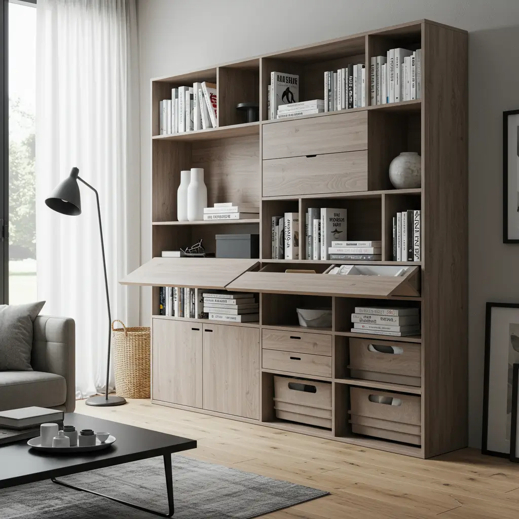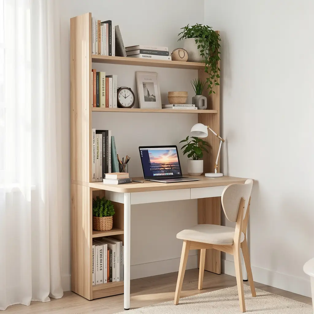If your “study room” is actually just a corner of your bedroom or living area, you need furniture that pulls double duty. A multifunctional bookshelf with a desk combo is the ultimate space-saving solution for students and work-from-home professionals.