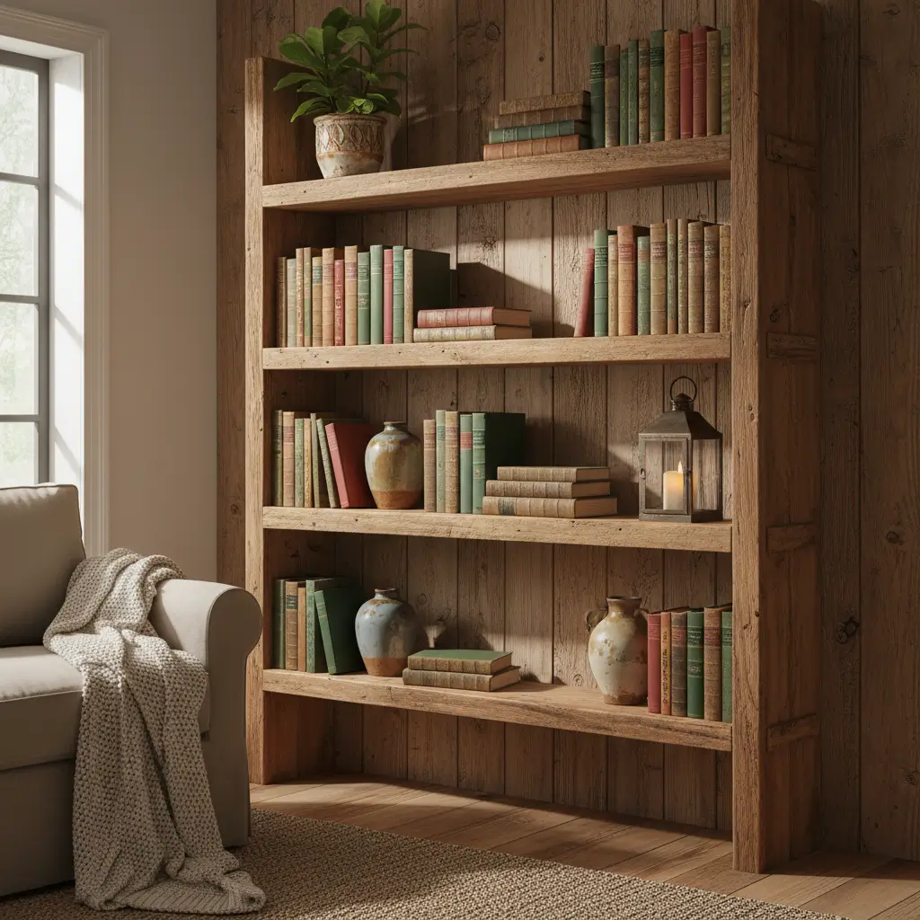 The charm of rustic wooden shelves comes from imperfection. Those knots, grain variations, and slightly weathered edges add character that perfect shelves could never achieve. I paired my barn wood shelves with black iron brackets, creating that farmhouse-meets-industrial vibe that makes everyone ask if I hired a designer.