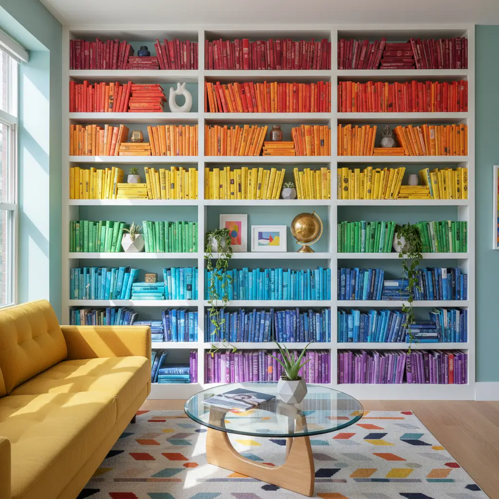 Don’t stress about perfect color matching. Books come in weird shades, and that variation actually adds depth. My “orange” section includes everything from rust to coral, creating organic color flow that feels natural rather than forced.