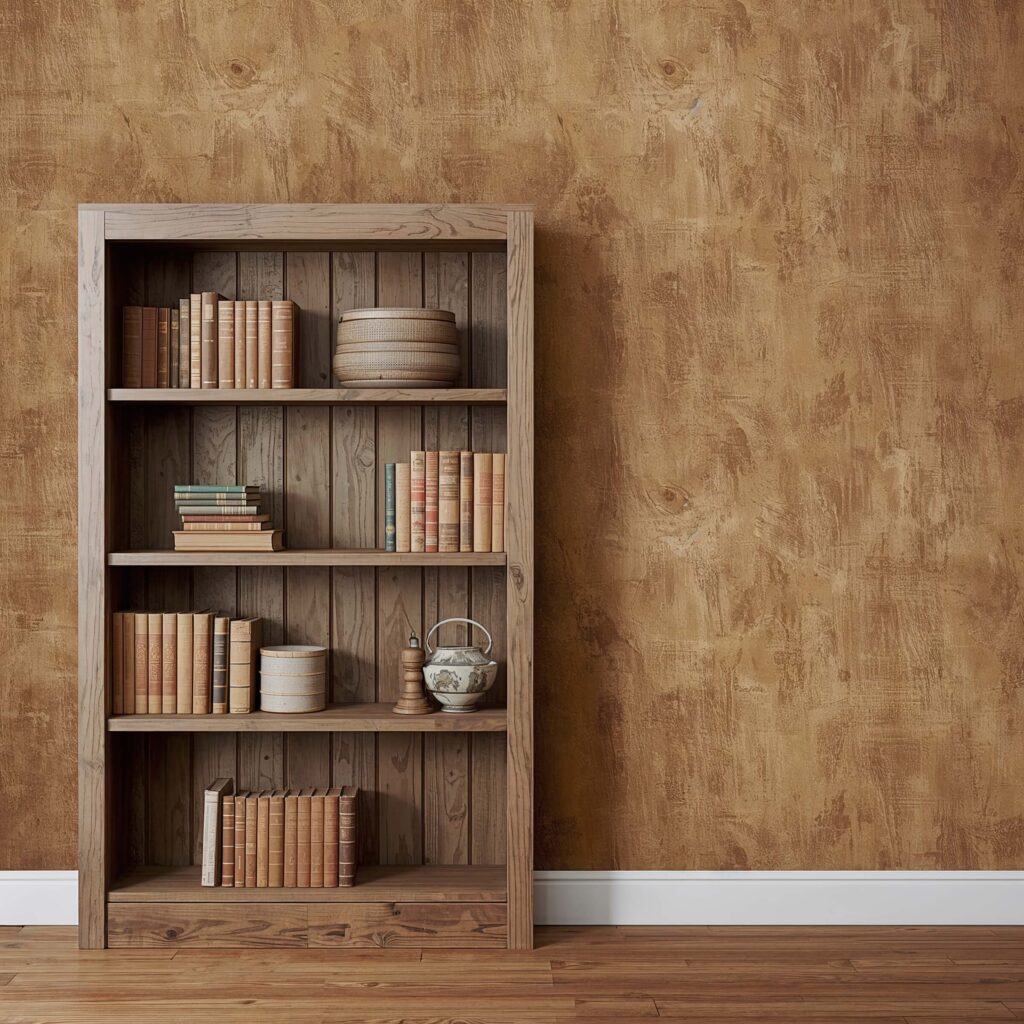 Nothing says “curl up with a good book” quite like rustic wallpaper behind your shelves. I’m talking about those warm wood textures, weathered barn board patterns, or brick designs that instantly make your space feel like a cozy cabin retreat – even if you’re stuck in a studio apartment downtown.
