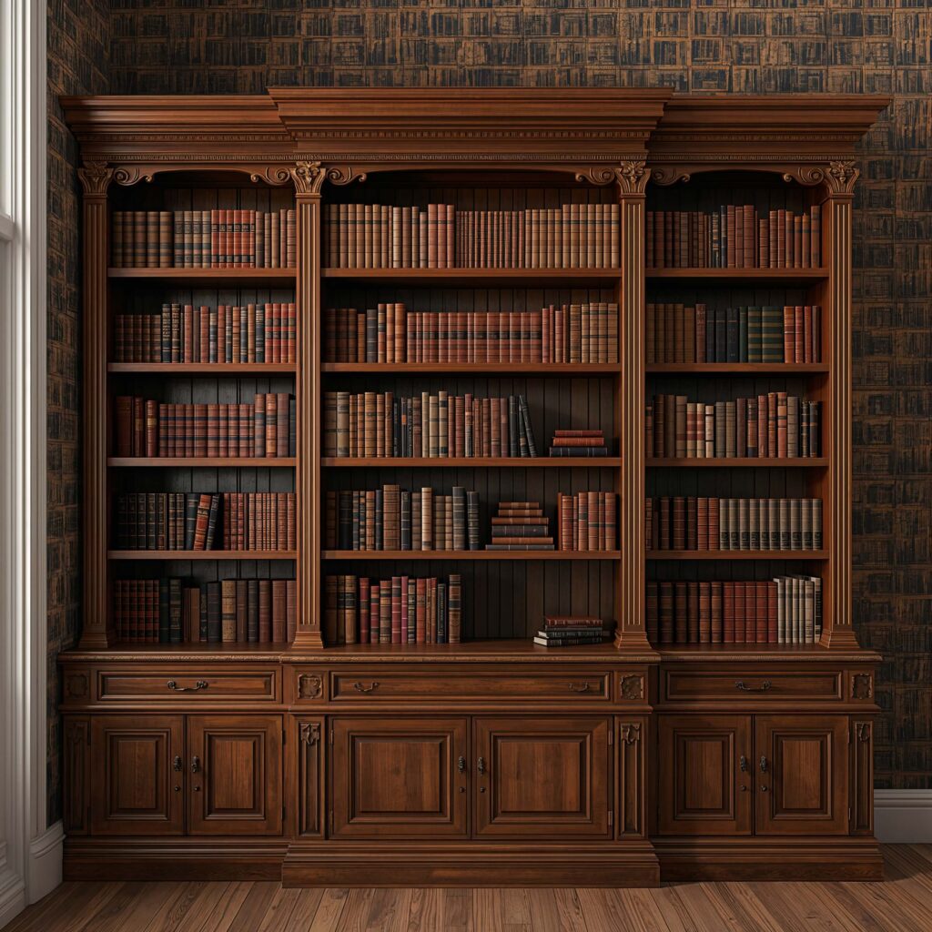 Color palette matters tremendously here. Rich burgundies, deep greens, and worn golds evoke traditional libraries, while sepia tones create a more subtle, aged effect.