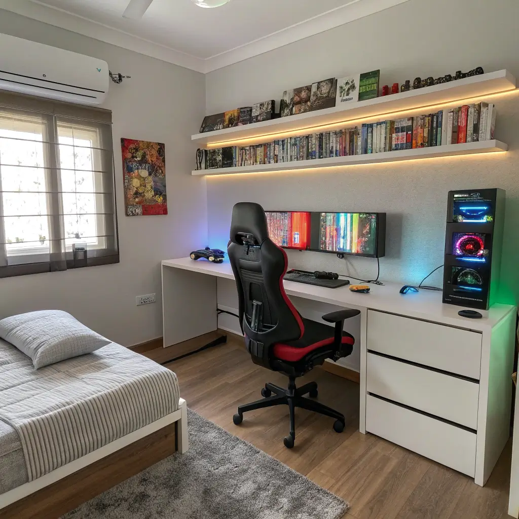 My nephew’s room has a desk setup that transforms from gaming station to homework zone. We invested in a quality desk, ergonomic chair, and cable management system that keeps everything organized. The gaming monitor does homework duty too, and the whole setup looks intentional rather than thrown together.